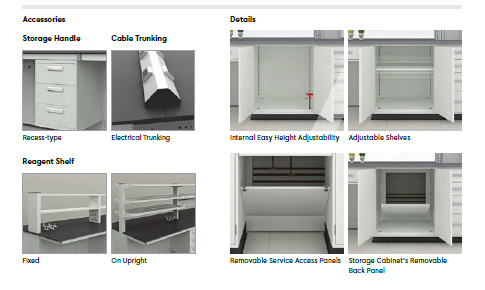 โข Adjustable height reagent shelves