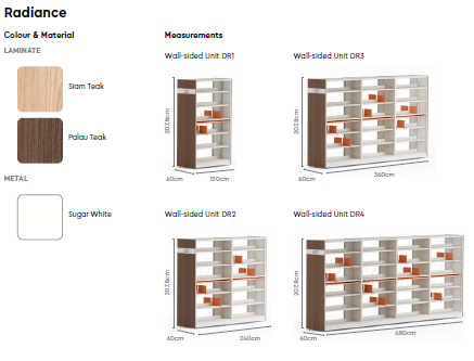 โข The Radiance bookshelf is a